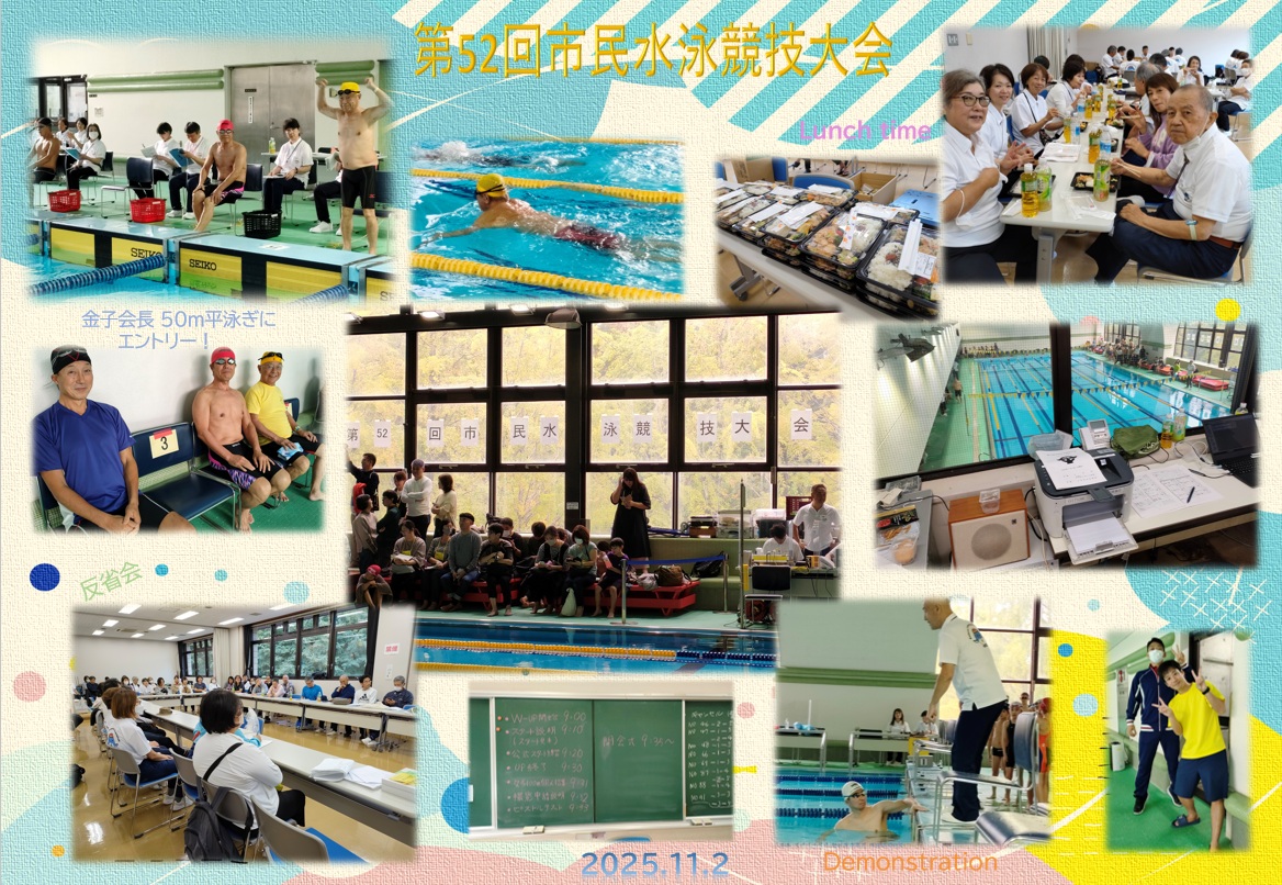 市民スポーツ祭参加 第52回市民水泳競技大会は、11月2日(日) 市民総合体育館温水プールにて開催されました。