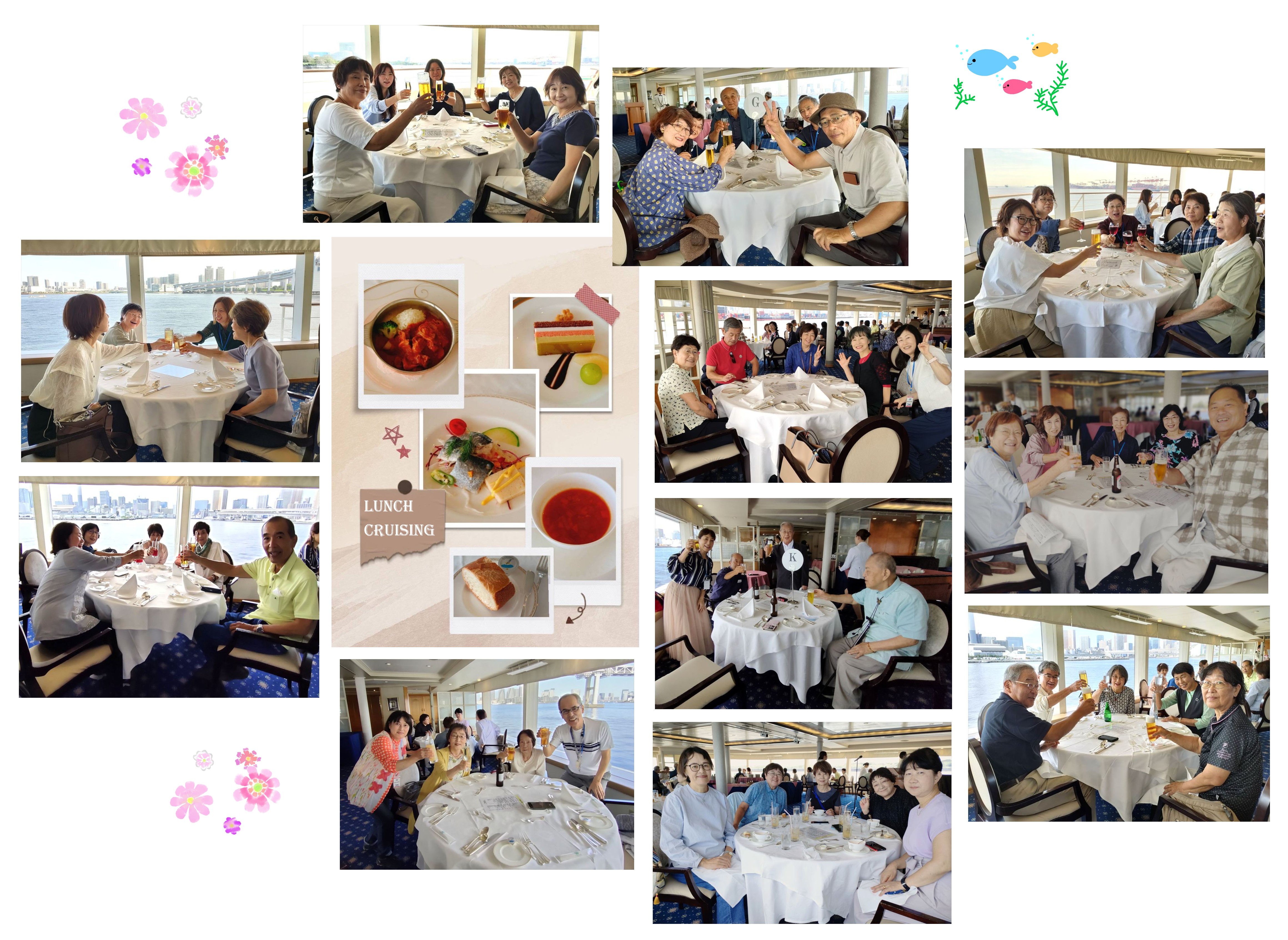 今回の「秋の交流会」は、天候にも恵まれ、最高のランチクルーズとなりました。皆さま無事に乗船され、日常を離れた楽しいひとときを過ごされたご様子でした。